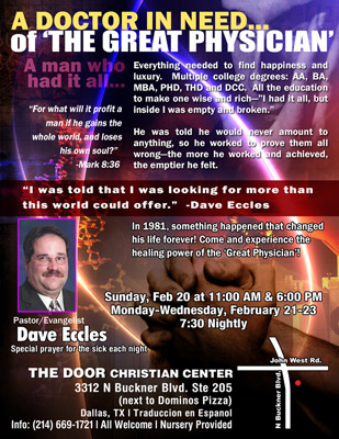 FLYER 061 Evangelist Testimony, Dave Eccles: Doctor in need of the Great Physician
