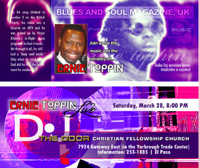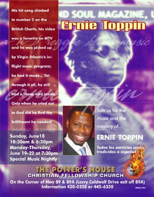 FLYER 069 Evangelist Testimony, Ernie Toppin: From the UK, Music and Preaching **Click for the Concert ticket option: Tickets (FLYER 069a) |