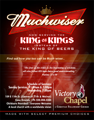 FLYER 082 Much Wiser: A spoof on the Budweiser theme |